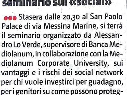 Seminario sui Social Network presso Hotel San Paolo Palace - Palermo